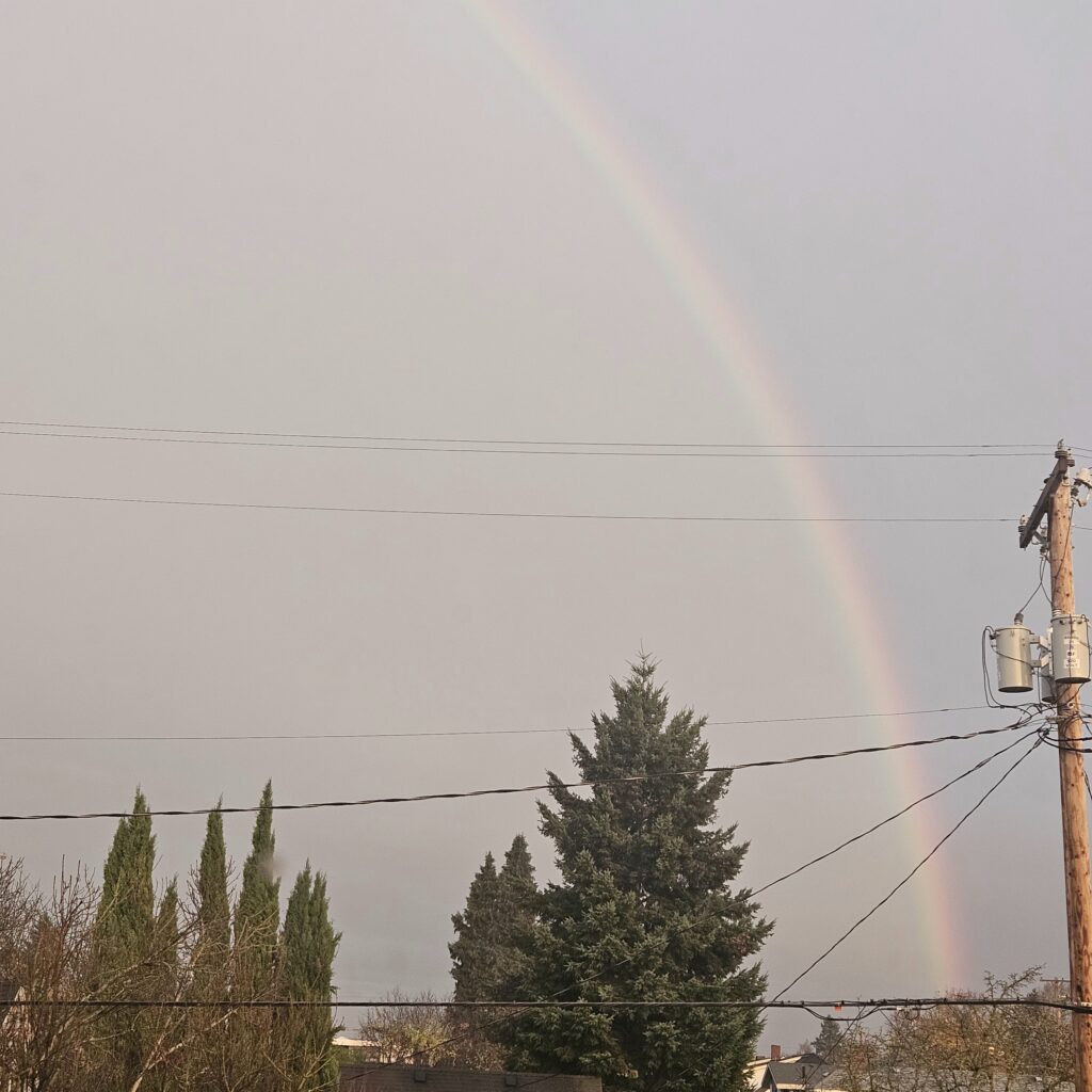 A full beautiful rainbow out our front window in the Overlook neighborhood after a recent storm. it was so much brighter and more vibrant in real life. Oh, and I love being able to see things out the window again!